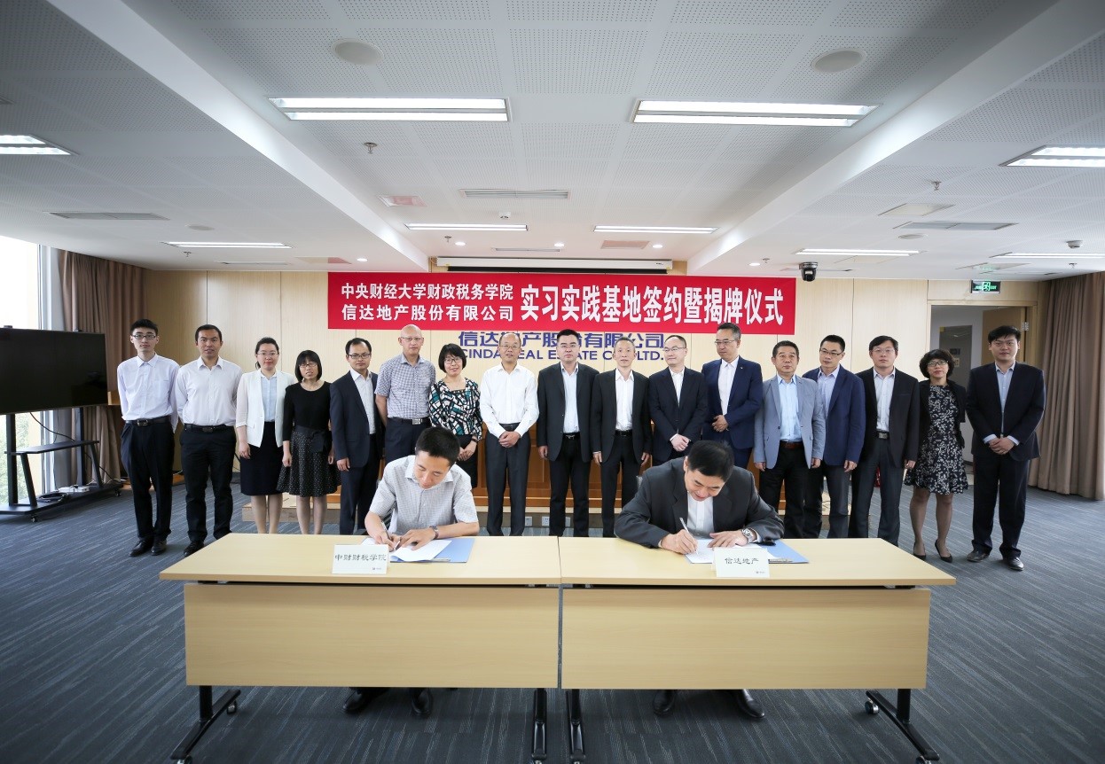 5月12日,财政税务学院与信达地产股份公司实习实践基地共建签约暨揭牌仪式在北京国际大厦隆重举行,财政税务学院院长白彦锋、党委副书记宋立岩,信达地产股份有限公司总经理丁晓杰、副总经理张宁、纪委书记桂千层、人力资源部副总经理丁辉应邀出席,财政税务学院师生代表、信达地产股份有限公司相关部门人员参加了本次仪式。