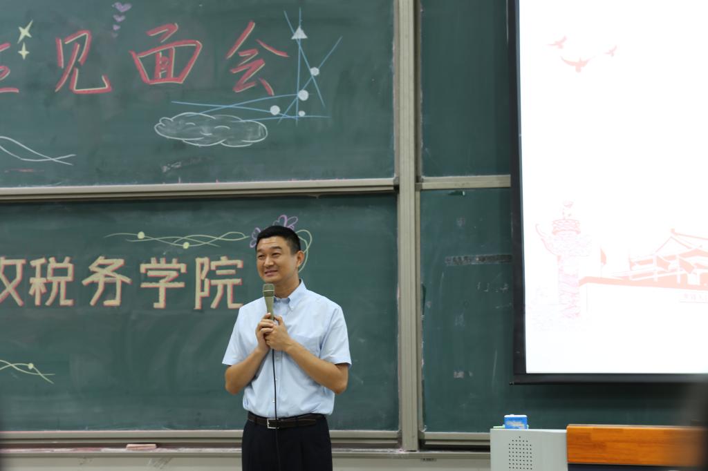 首先,由白彦锋院长发表了讲话,他向2017级的同学表达了热切的欢迎,为新生上了第一课。他以北邮同学大二辍学的例子告诫同学们大学生活中老师们不会时刻跟随在同学们身边,要处理好游戏、看片和大学生活之间的关系,正确看待交友和恋爱,要有健康的精神生活。紧接着,白院长介绍了学校、学院的历史发展,并详细介绍了学院的几大专业和学科和各种发展方向。在对同学们的优异成绩给予肯定和鼓励后,白院长提到中国目前已经是全球第二大经济体,位于世界前列,经济发展要有学术,有理论,目前同学们接受的鲜花和掌声已经足够多,要谨记“生于忧患,死于安乐”的道理,鼓励同学们珍惜大学的学习时光,不要做一个消费者消费荣光,要成为一个生产者为学校增光添彩,为祖国做贡献。随后,他提到在大学生活中同学们要学会理财,俭以养德,并且要培养批判性思维方式,“贵有恒何必三更眠五更起,最无益只怕一日曝十日寒”,推荐大家可以通过听广播来积累对财税问题的敏感度,并以王亚男治学的例子提醒同学们注重锻炼身体。最后他提到,财政学是用大智慧推进国家治理,经世济民,期待大家努力学习,成为财税改革的“弄潮儿”。
