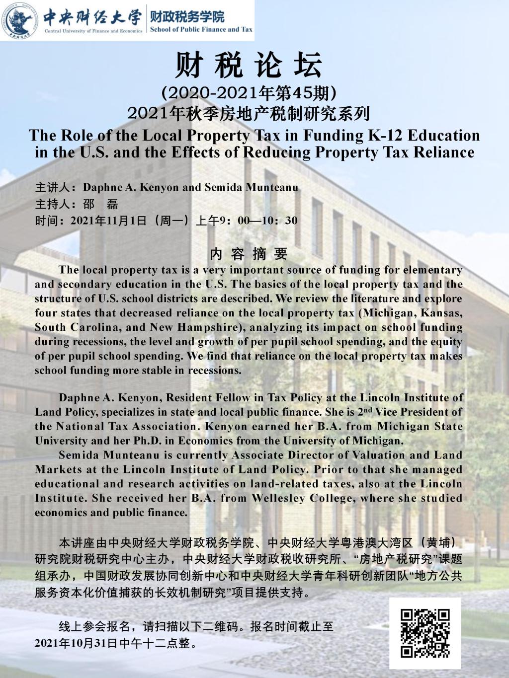 【财税论坛】The Role of the Local Property Tax in Funding K-12 Education in the U.S. and the Effects of Reducing Property Tax Reliance