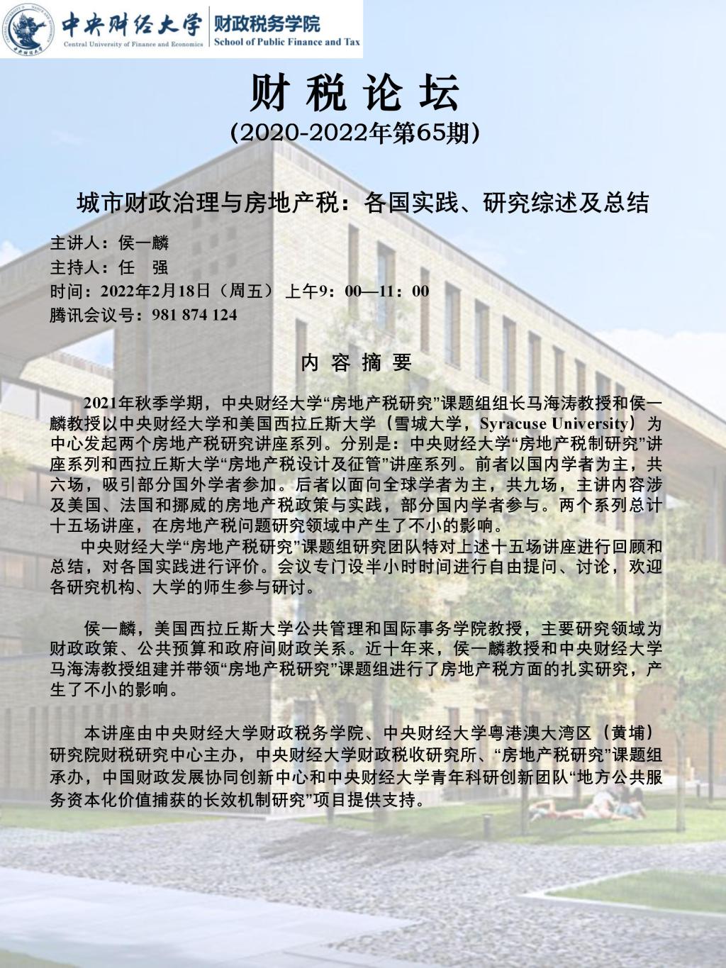 中央财经大学“房地产税研究”课题组依托中央财经大学财政税收研究所开展活动。更多课题组相关观点、文章及活动,请长按扫描二维码关注中财财税所中央财经大学财政税收研究所微信公众号。