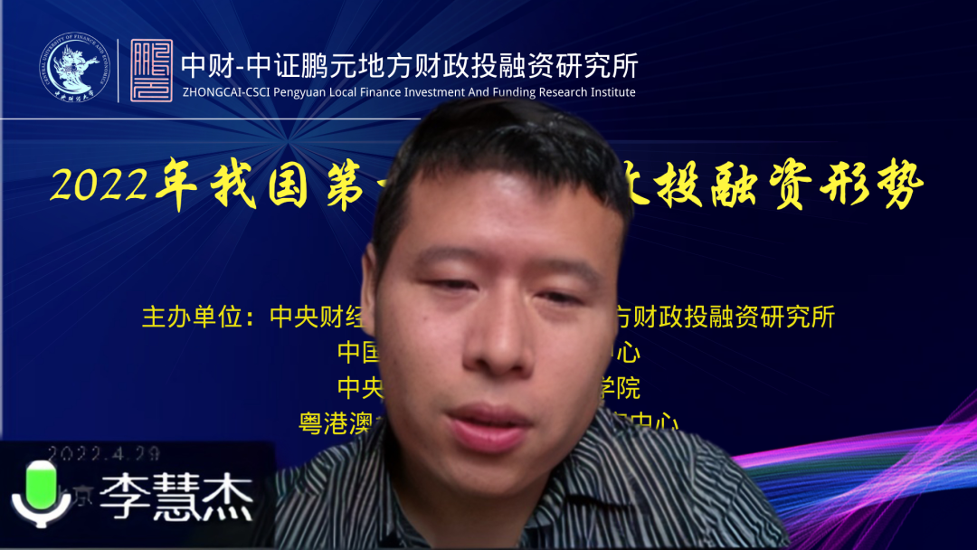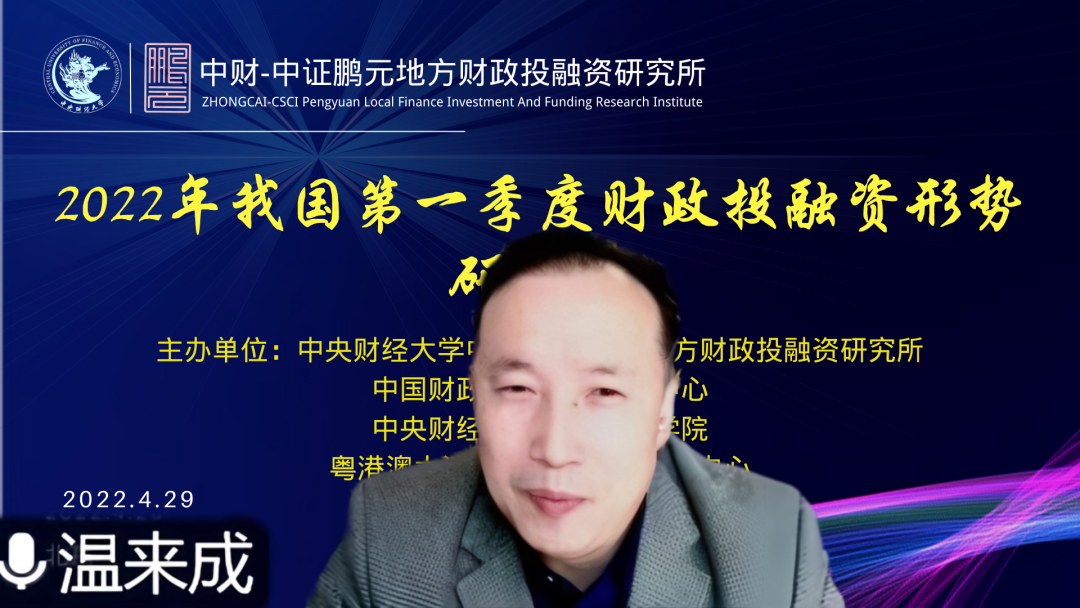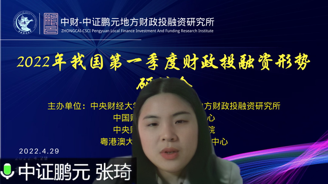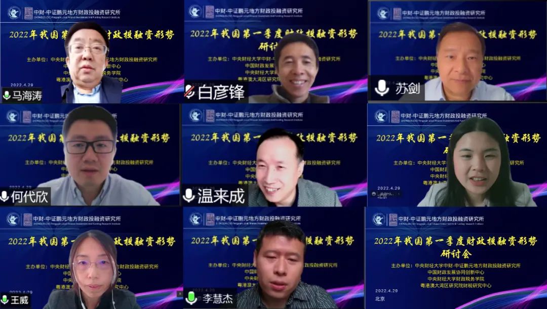 4月29日,由中央财经大学中财-中证鹏元地方财政投融资研究所、中国财政发展协同创新中心、九游电子、粤港澳大湾区研究院财税研究中心共同举办的2022年我国第一季度财政投融资形势研讨会在线上举行。来自北京大学、中国社会科学院、中央财经大学、中证鹏元资信评估股份有限公司的专家学者,以及中央财经大学财税学院的部分研究生参加了本次研讨会。