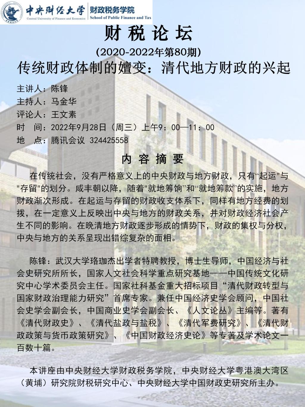 财政税务学院举办“传统财政体制的嬗变:清代地方财政的兴起”讲座