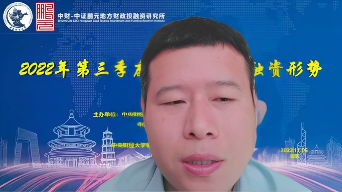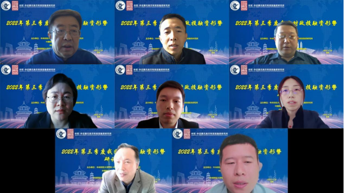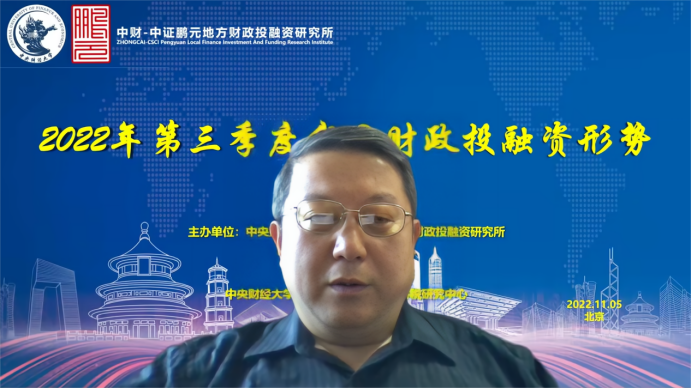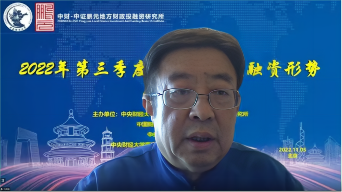 2022年11月5日,由中央财经大学中财-中证鹏元地方财政投融资研究所、中国财政发展协同创新中心、九游电子、中央财经大学粤港澳大湾区研究院财税研究中心联合主办的2022年第三季度我国财政投融资形势线上研讨会成功举办。来自中国人民大学、中国财政科学研究院、中央财经大学、中财-中证鹏元地方财政投融资研究所、中证鹏元资信评估股份有限公司的专家学者进行了发言。来自全国各地的专家学者、学生,以及社会各界人士13000多人通过腾讯会议、百度直播参加了研讨会。