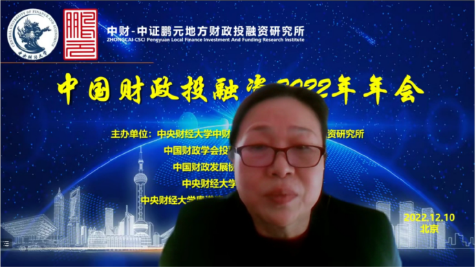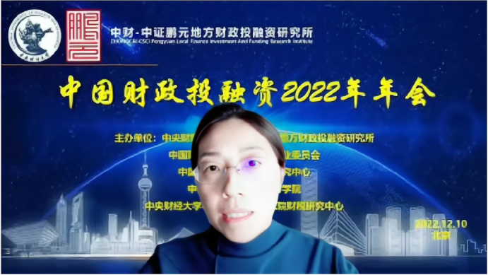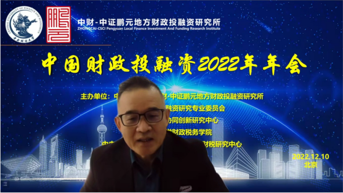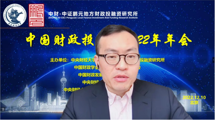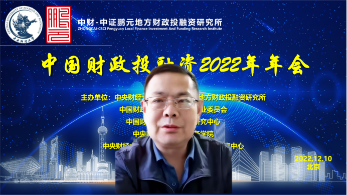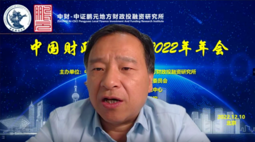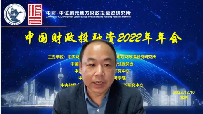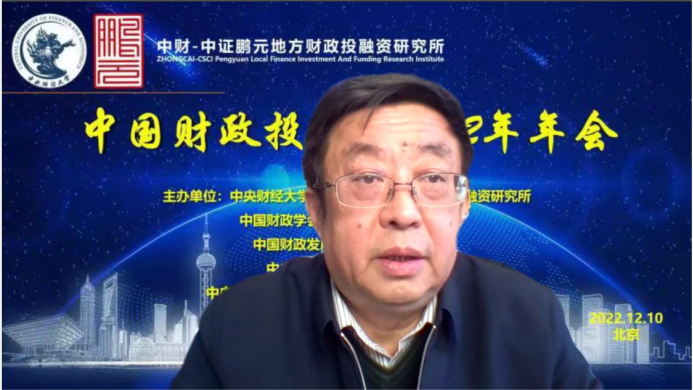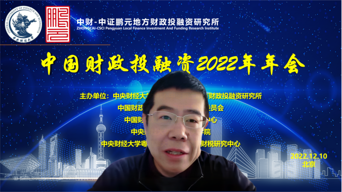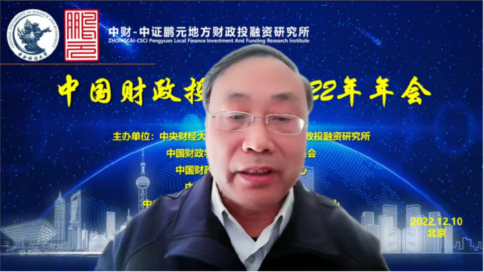 中国财政投融资2022年年会分为致辞和会议发言两个部分。年会致辞由中国财政发展协同创新中心副主任姚东旻教授主持,中央财经大学党委副书记、副校长马海涛教授、中国财政学会投融资研究专业委员会副主任兼秘书长赵全厚研究员、中证鹏元资信评估股份有限公司张剑文董事长分别进行致辞。