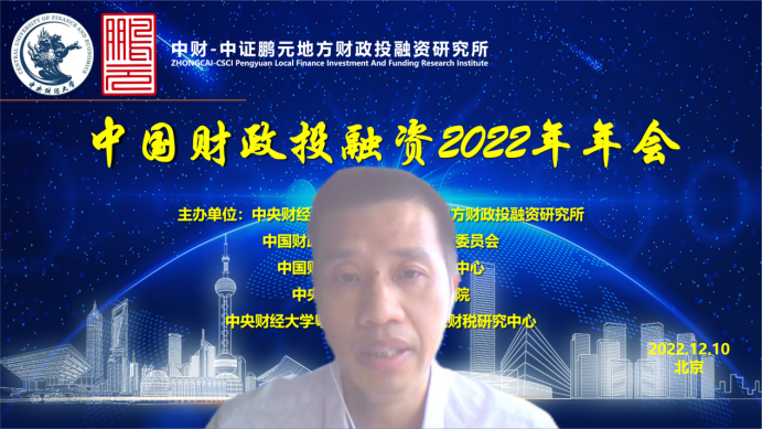 中财-中证鹏元地方财政投融资研究所副所长李升副教授最后做出了会议总结。我国正处在全面建设社会主义国家的新阶段,也正朝着实现共同富裕的伟大目标而努力奋进。新时代更加强调公平分配,既有现实意义又有挑战性。财政投融资作为财政政策和财政制度重要的载体和措施,引导财政资源和金融资源向弱势群体以及落后的地区等方面进行倾斜,构建更公平的基础设施体系和社会公共设施、公共服务体系,有利于解决发展当中的不平衡和不充分的问题,有利于改善再分配格局,对于实现共同富裕起到非常重要的作用。各位专家学者从不同的角度对“财政投融资与共同富裕”主题进行论述,提出了丰富多彩的政策建议,对未来共同富裕的深入研究具有非常重要的参考价值。最后李升副教授对各位与会嘉宾表示由衷的感谢,本次年会取得圆满成功。