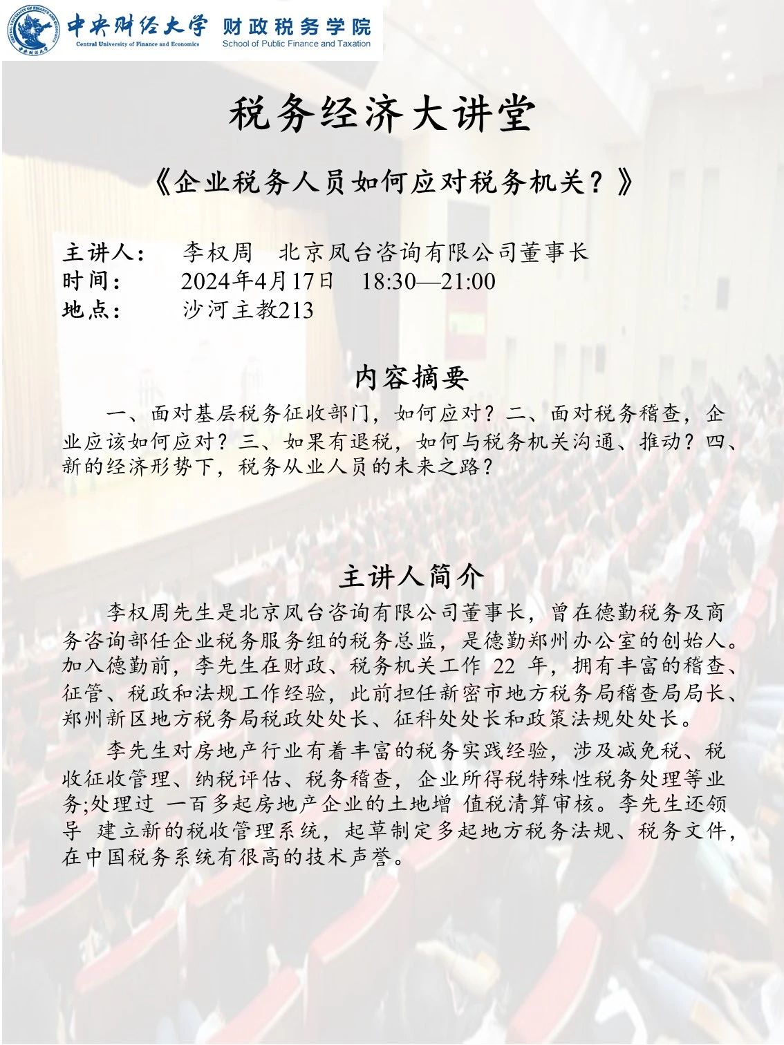 财政税务学院举办2024年“税务经济大讲堂”系列讲座——《大企业税务管理数字化升级》