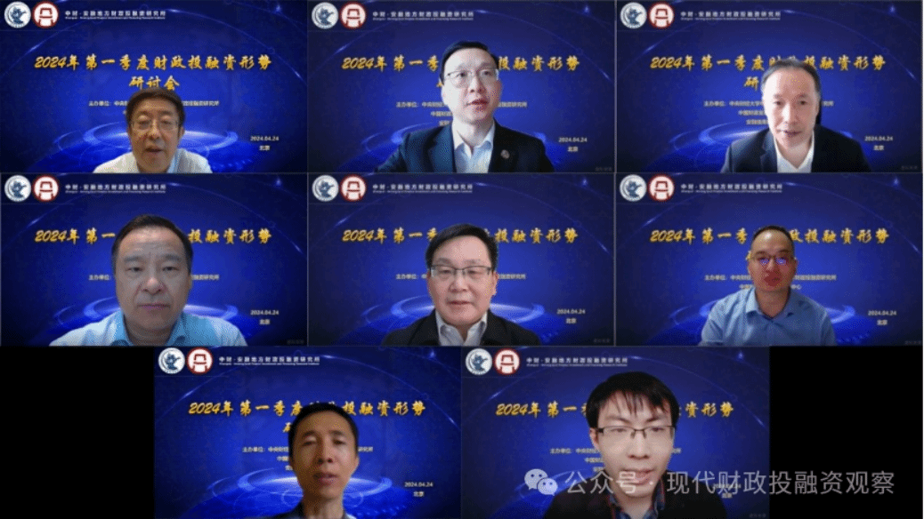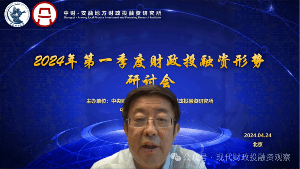 2024年4月24日,由中央财经大学中财-安融地方财政投融资研究所、中国财政发展协同创新中心、安融信用评级有限公司联合主办的2024年第一季度财政投融资形势研讨会成功举办。来自北京大学、中国人民大学、中国财政科学研究院、中央财经大学、中财-安融地方财政投融资研究所、安融信用评级有限公司的专家学者进行了发言。中央财经大学党委副书记、校长马海涛教授、安融信用评级有限公司副总裁胡超研究员分别致辞。会议由中央财经大学中财-安融地方财政投融资研究所执行所长温来成教授主持。来自全国各地的专家学者、学生通过腾讯会议参加了研讨会。中央财经大学党委副书记、校长马海涛教授在致辞中对各位与会嘉宾的到来表示热烈欢迎,对各位专家长期以来对中央财经大学和研究所给予的大力支持表示衷心感谢,同时非常感谢我们的合作伙伴安融信用评级有限公司。马海涛校长指出,财政部已公布了第一季度财政收支数据,前两天财政部王东伟副部长也介绍了有关情况,研究所就下一步的财政经济改革走势组织专家研讨,是非常有必要的,希望大家畅所欲言,共同来探讨这些问题,预祝研讨会圆满成功。