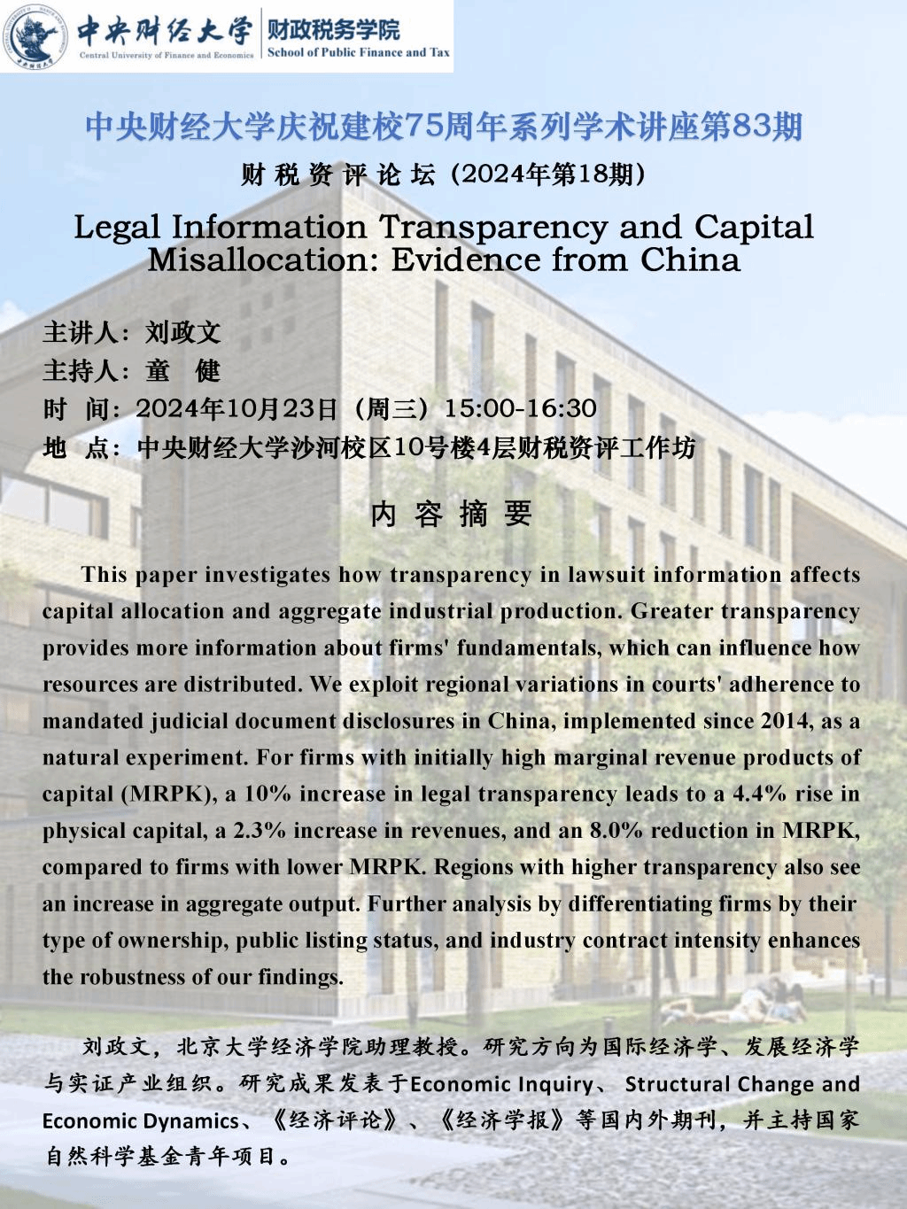 【财税资评论坛】Legal Information Transparency and Capital Misallocation
