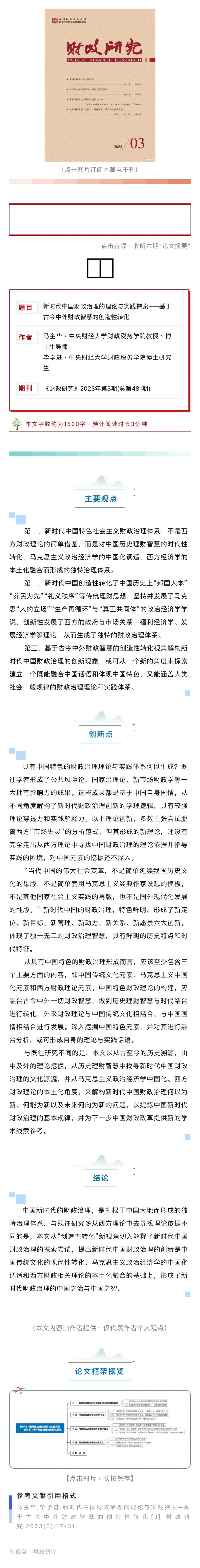 《财政研究》刊发我院马金华教授财政基础理论研究论文:新时代中国财政治理的理论与实践探索——基于古今中外财政智慧的创造性转化