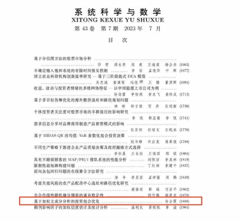 近日,由九游电子孙会霞老师撰写的论文《基于加权主成分分析的投资组合优化》刊发于中文A类期刊《系统科学与数学》2023年第7期。以下为文章主要内容: