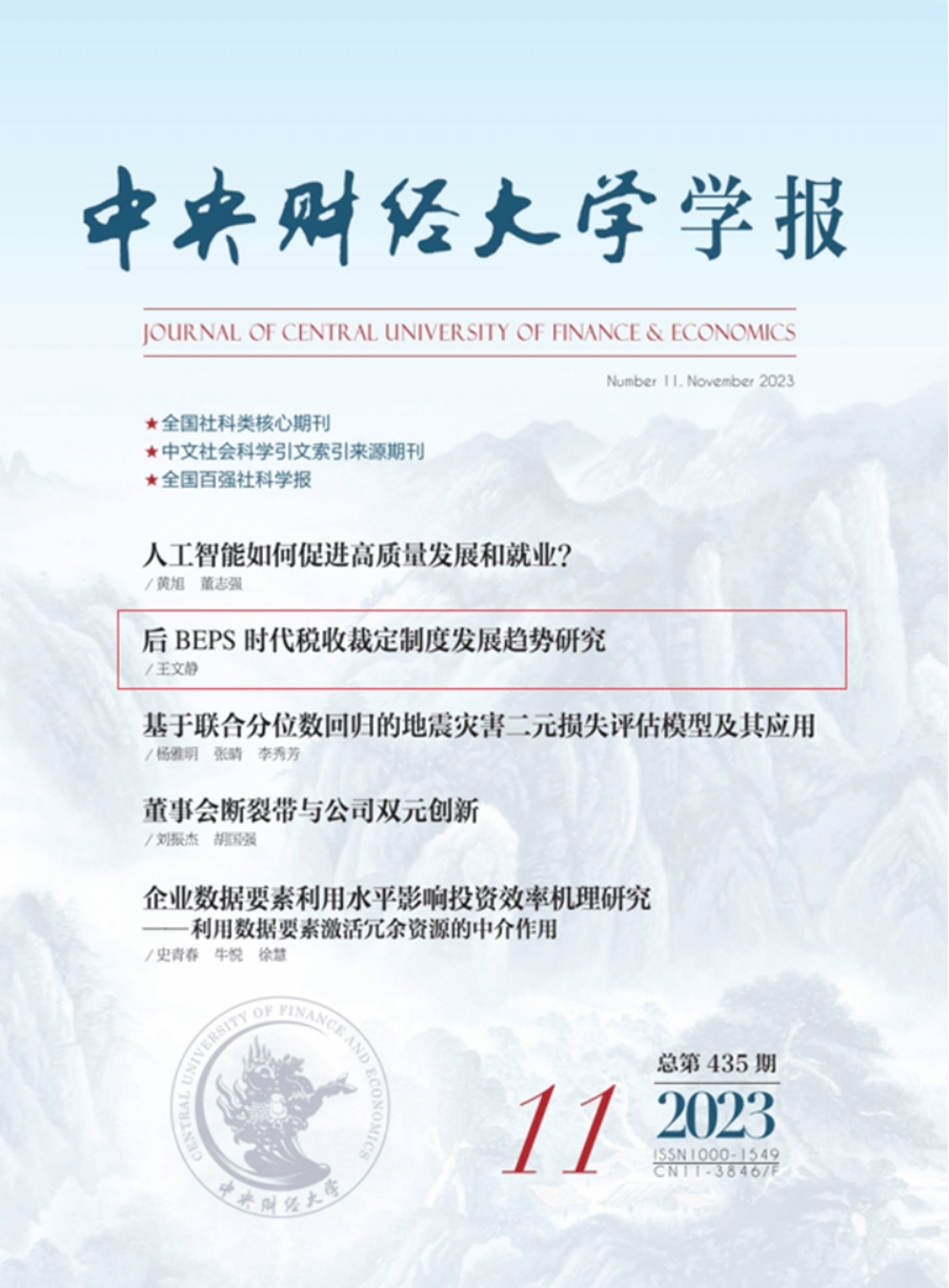 近日,由九游电子王文静副教授撰写的论文《后BEPS时代税收裁定制度发展趋势研究》在中文A类期刊《中央财经大学学报》2023年第11期作为封面文章刊发。以下为文章主要内容:
