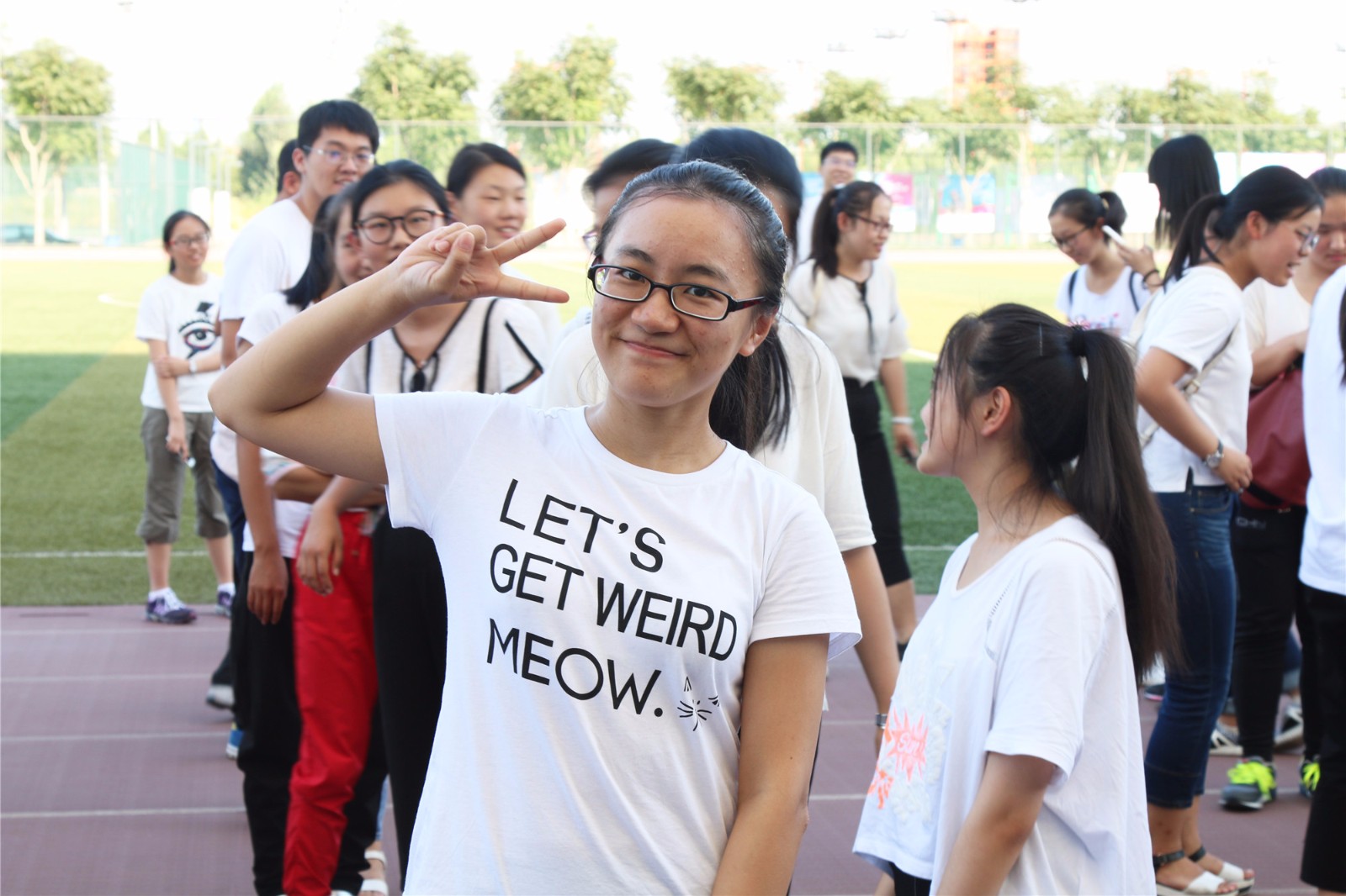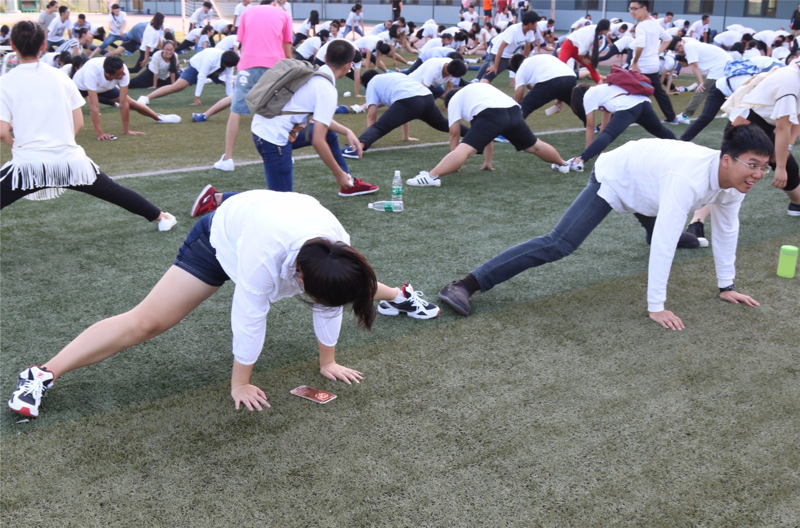 随后进行的“趣味拼字”环节,则是让新生们依据指挥,相互合作,排成有序队列,拼出“财税”二字。考虑到光影问题,这一环节被提前到下午三点进行,但即便天气炎热,同学们依然情绪高涨,听从指挥,相互配合,积极出谋划策,在短短的20分钟内排出了整齐的“财税”字阵,展示了良好的团队精神。