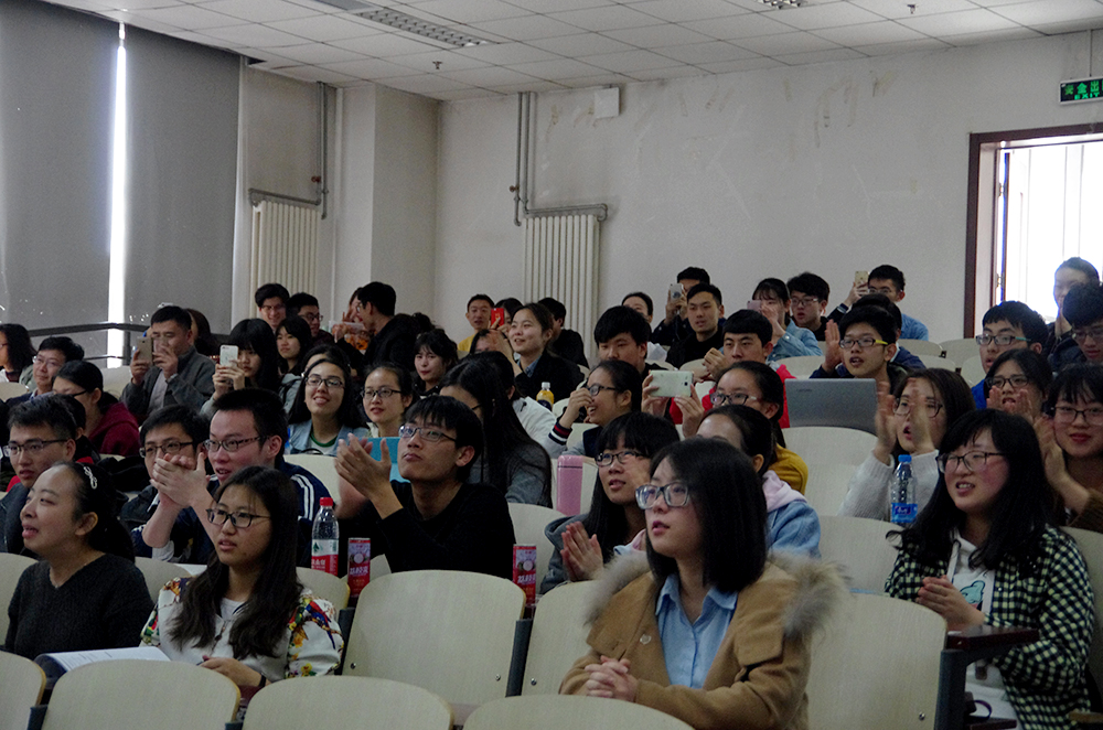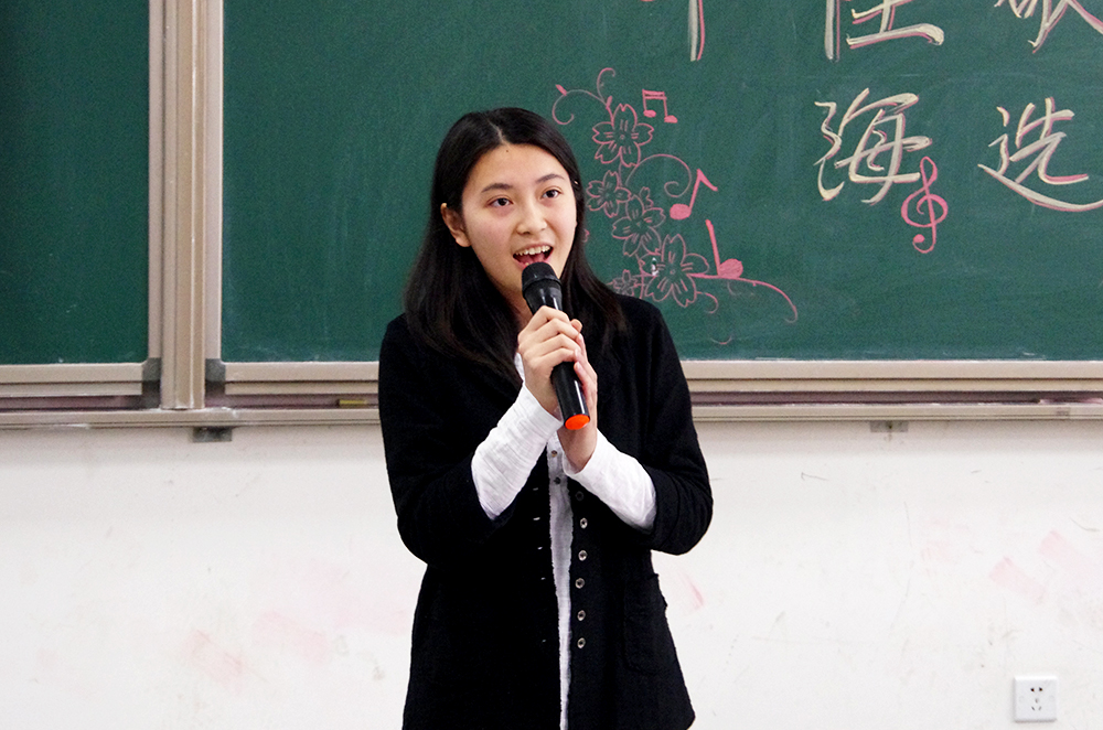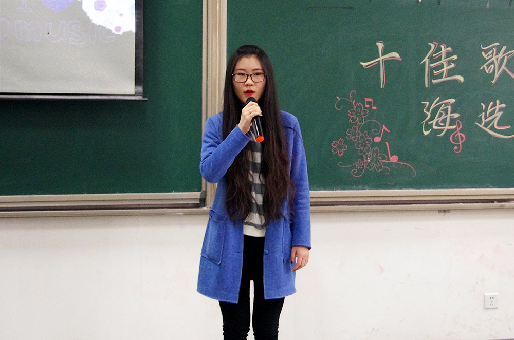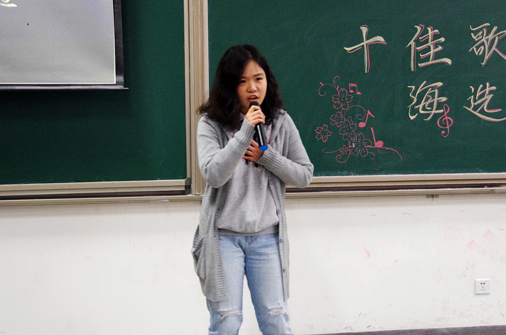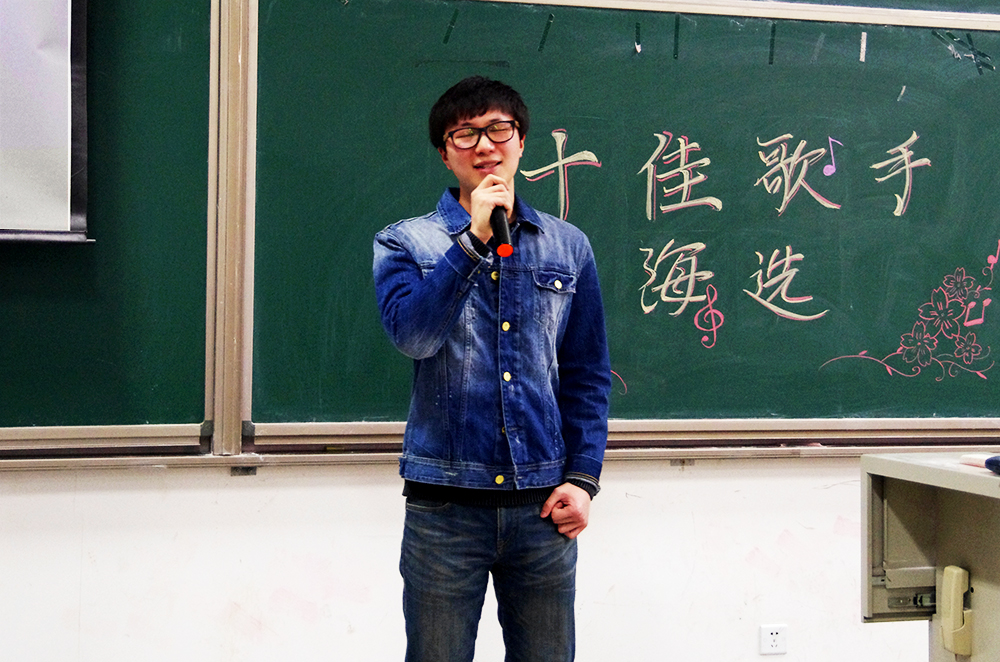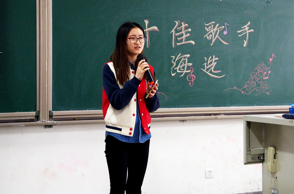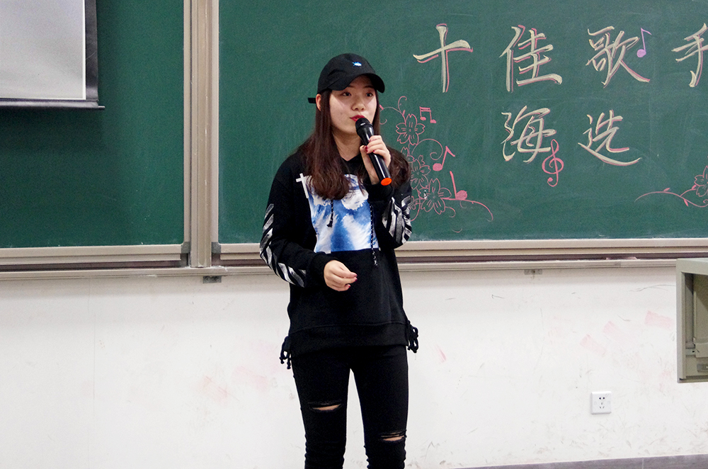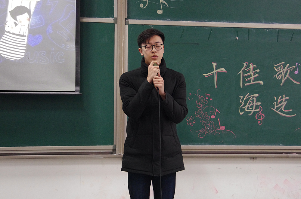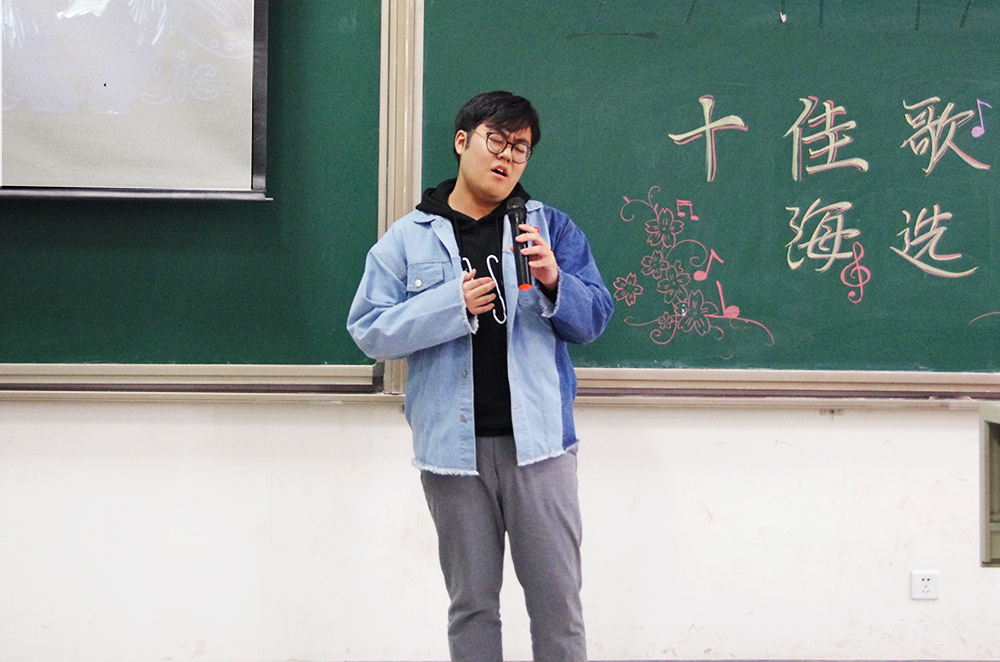 比赛的第一个环节,三十一位参赛选手轮流演唱精心准备的两分半钟的歌曲,无论是舒缓的情歌还是欢快的劲曲,都被同学们演绎出别致的风采。选手们都尽力拿出自己最好的状态,也许技巧有高低,音色有优劣,但是他们对于歌唱的热爱却是一样的。选手们和观众积极互动,一次次把现场的气氛带向高潮。