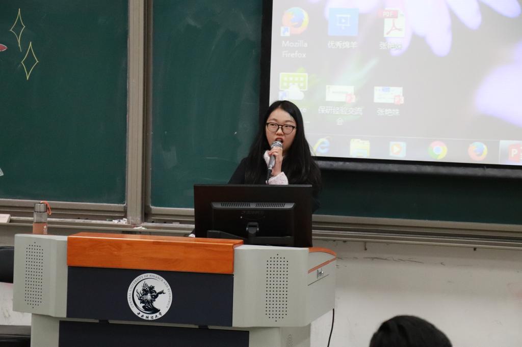 最后分享的是赵新宇学姐,她是直保财政税务学院本院的税务专硕,她非常谦虚地向我们介绍了自己大三前三年的经验,并希望我们一定把握好大学前五个学期,她是前三年专业绩点第一,虽然因为一些原因没能去清北,但是她也对目前情况比较满意。