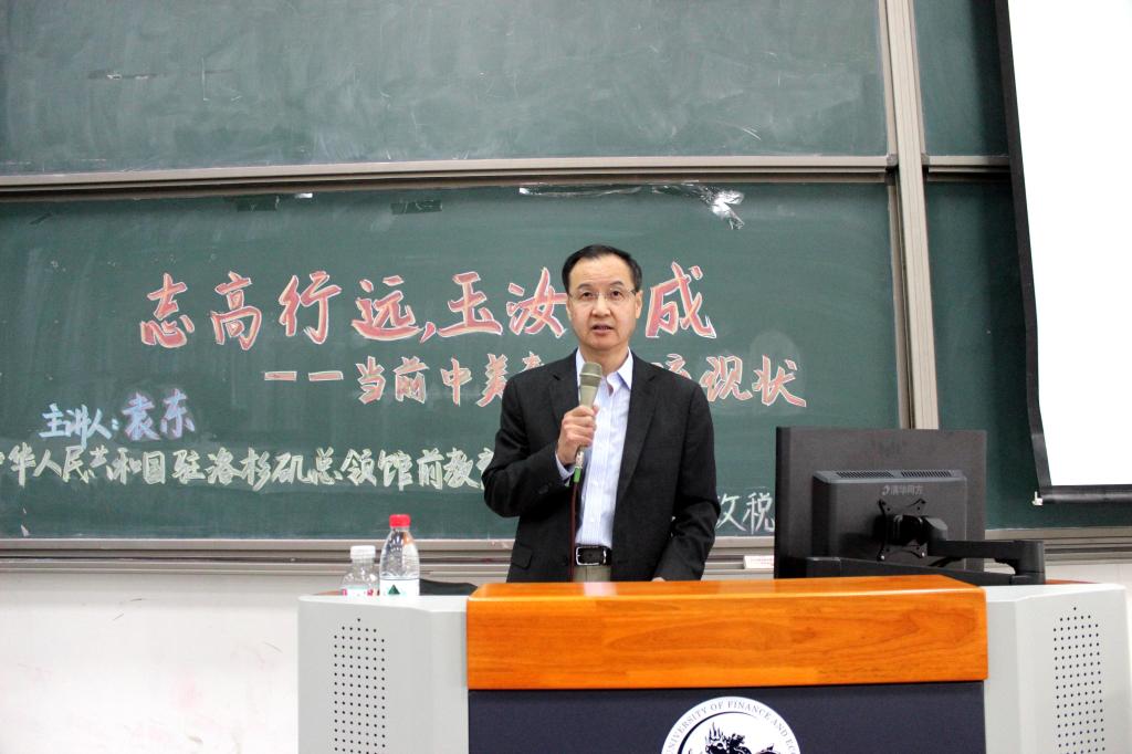 12月6日下午两点,在沙河校区东区主教216教室财政税务学院举办了一场别开生面的讲座,本次讲座的主讲人是中华人民共和国驻洛杉矶总领事馆前教育参赞袁东老师,本次讲座的主题是“当前中美教育交流现状”。财政税务学院党委副书记宋立岩老师、团委副书记陈颖老师和学院的本科生、研究生同学一起聆听了此次讲座。