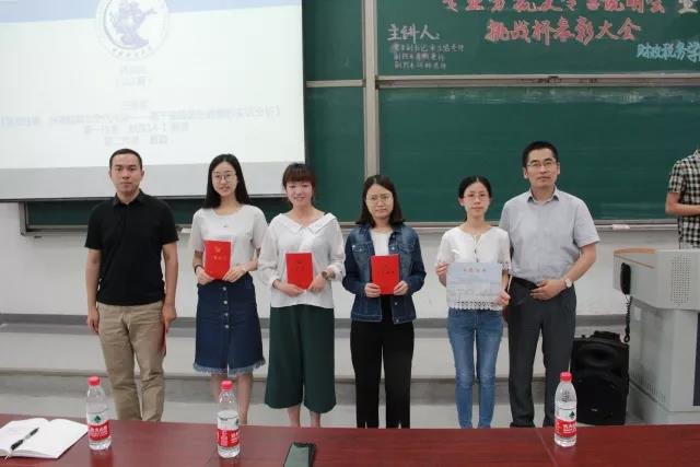 最后一个环节是挑战杯表彰大会,财政税务学院在挑战杯论文大赛和创业大赛中都收获颇丰。首先,由财政税务学院团委学生会学术实践部部长鲍梦蓓代表校团委学术实践部为陈颖老师颁发优秀组织奖,随后,由宋立岩老师为挑战杯论文大赛获得一等奖的同学颁奖,肖鹏老师、于来老师为挑战杯论文大赛获得三等奖的同学颁奖。