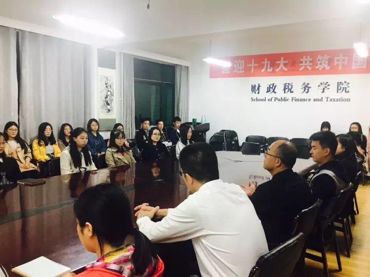 10月24日晚,财政税务学院本科生第二党支部在学院南路校区主教1108会议室召开支部座谈会,邀请到我院2001届毕业生王辉校友与青年党员进行交流。正值中国共产党第十九次全国代表大会闭幕之际,王辉校友作为一名优秀的共产党员,此次回到学院与同学们分享了自己工作以及响应党和政府号召前往河南省卢氏县南石桥村进行助推脱贫攻坚的经历,令同学们收获颇丰。