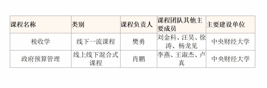 近日,教育部高等教育司发布《关于第二批国家级一流本科课程认定结果的公示》,中央财经大学18门本科课程入选。其中,我院《税收学》入选线下一流课程,《政府预算管理》入选线上线下混合式课程一流课程。